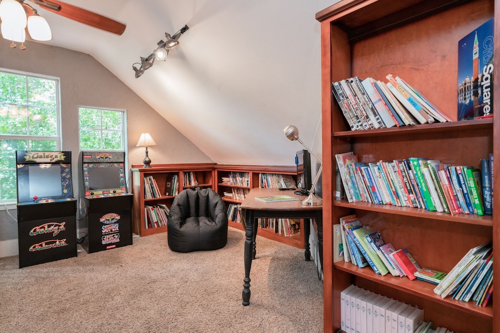 LIBRARY stocked with books of all kinds for moms and dads and kids